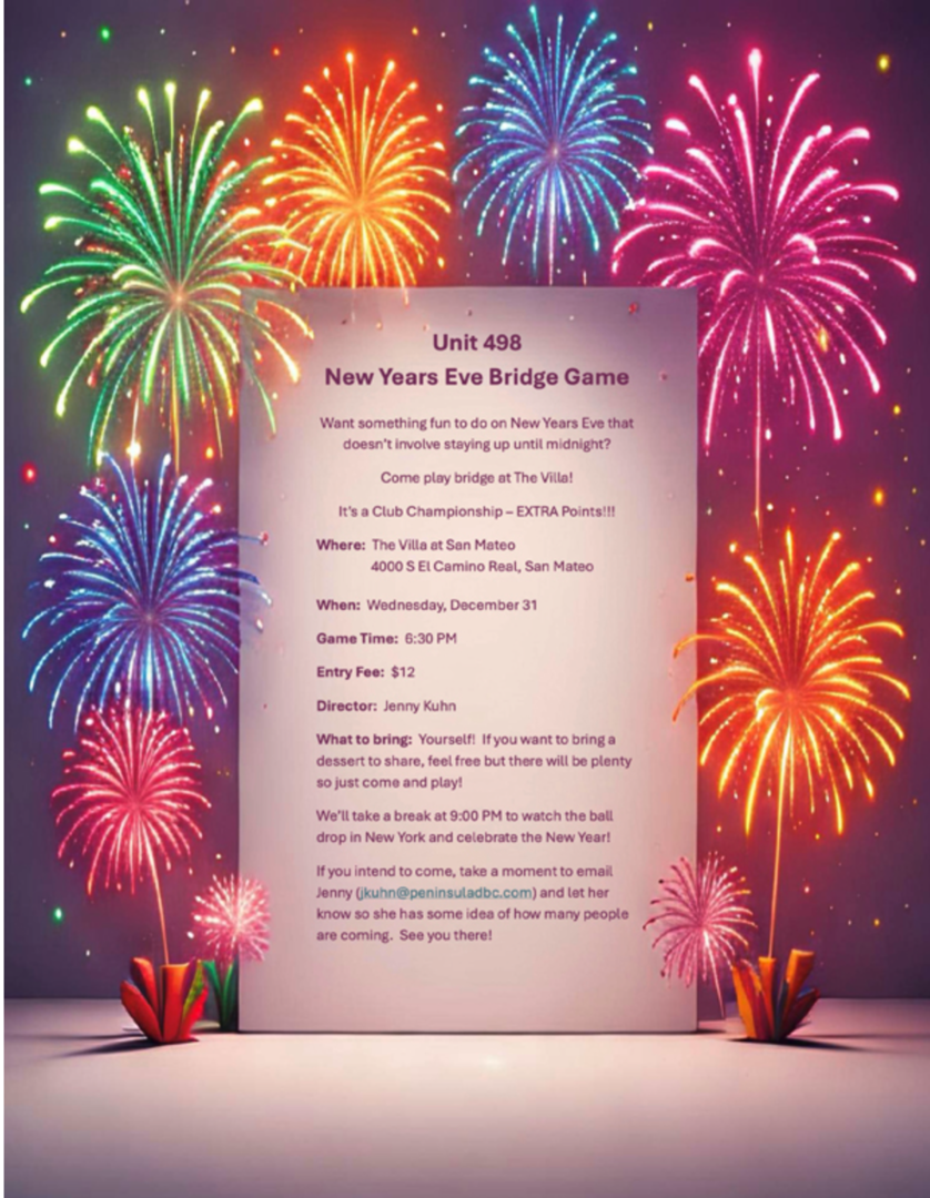 Kai Eckert, our very own Unit champion, is now a Bridge celebrity! He posts Bridge videos on his personal channel and the ACBL YouTube channel with many series on hand analyses, tournament recaps, and where he just plays Bridge. His most popular series is "It's Your Call" where he invites a guest and challenges them to a difficult bidding problem.