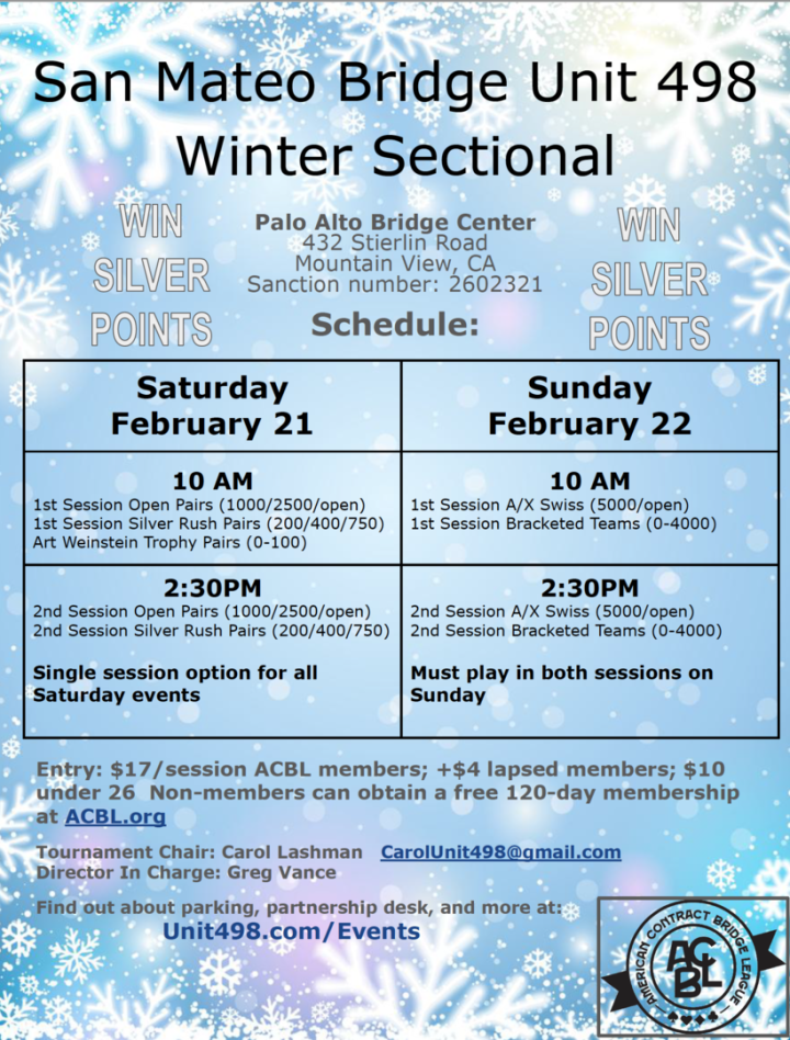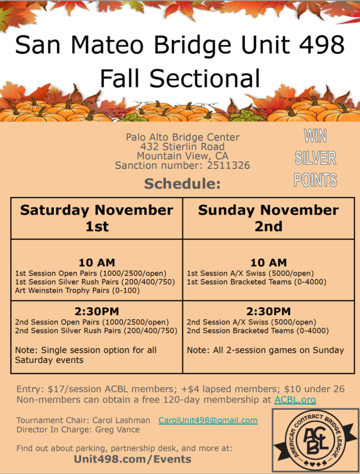 Nov 1-2: Sectional at Palo Alto Bridge Center